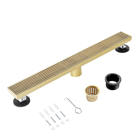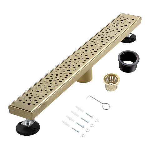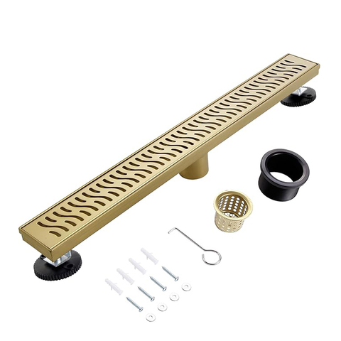 Griglia estraibile con canale doccia a scarico lineare in oro spazzolato 304 scarico a pavimento per bagni in acciaio inossidabile