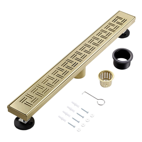 Dreno removível do assoalho dos banheiros do canal linear escovado da grelha 304 de aço inoxidável do chuveiro do dreno do ouro